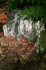 besides the ferns, and the mushrooms, there are also the rocks. one interesting thing about the trail is the amount of talc and quartz you can find: