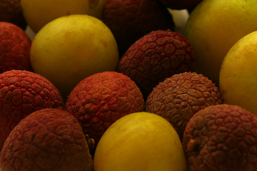 my father brought over their spare set, a small white 14" GE tv/vcr combo. he actually found it on the side of the street a while back thinking it was an old imac. the unusually large remote was taped to the top of the tv at the time, but my father couldn't find anymore. i tried to add more channels with the universal remote function on my remotes, but the GE tv/combo must be a very old model because none of the codes i used worked. fortunately my father did manage to find the missing remote after all and i went down to the cafe to pick it up along with some lychee nuts and these tiny sweet yellow plums.