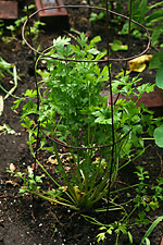 i also don't get as much sun as i'd like, with a wooden fence on one side and a wall of raspberries on the other. in fact, none of the plots get a full day's worth of sunshine, and many gardeners have just given up and have perennial shade gardens instead. i ran into wayne who was very philosophical about the bad growing season we've been having. he left on his bicycle.