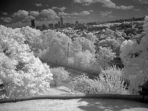 antsy for some photo action, i went to the top of prospect hill park to shoot a few infrared photos when i noticed the large clumps of puffy white clouds drifting through the sky. i reverted to my old nikon coolpix 4500 since my canon SLR can't focus with the infrared filter.