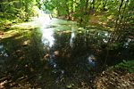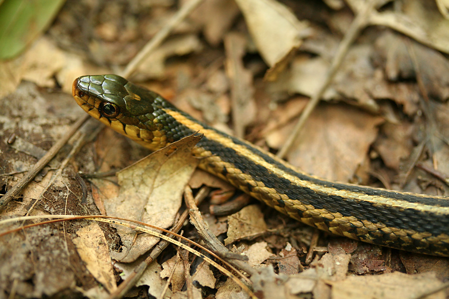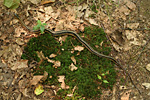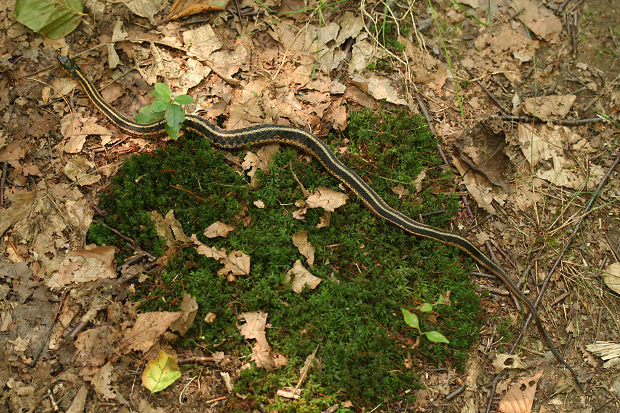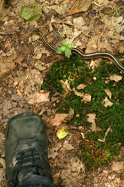i know a nature place is good when i find snakes: i came across a garter snake just lying on the trail (it was probably warming itself in a patch of dappled sunlight). it was a small garter snake compared to ones i've seen in the past, but even then it was easily 2 feet long. after taking several photos, i gently touched the tip of its tail and it instantly slithered away into some leaves. i don't know why, but even though i'm sort of afraid of snakes, it's one of the few wild animals i've touched on more than one occasion. maybe i like the idea of facing my fears, or maybe it's just the fact that snakes often lie so still, it's easy to imagine them not being real. of course once they start moving i pretty much instinctively flinch.