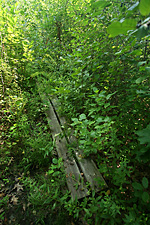 at the western edge of the trail i came across a small hidden boardwalk. here i found a few purple loosestrifes and orange jewelweeds. i stayed and listened to the sound of rushing water for a few minutes before continuing on the trail.