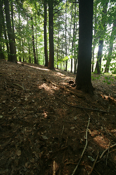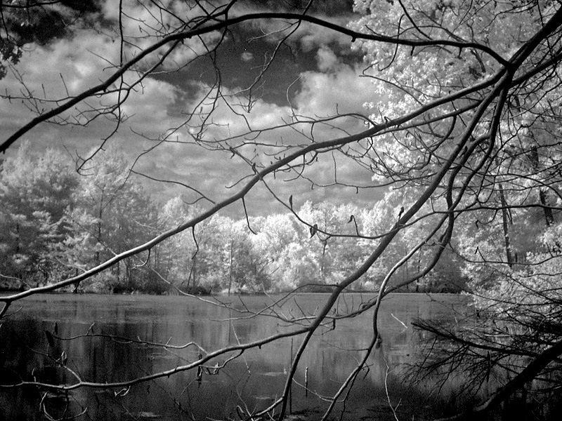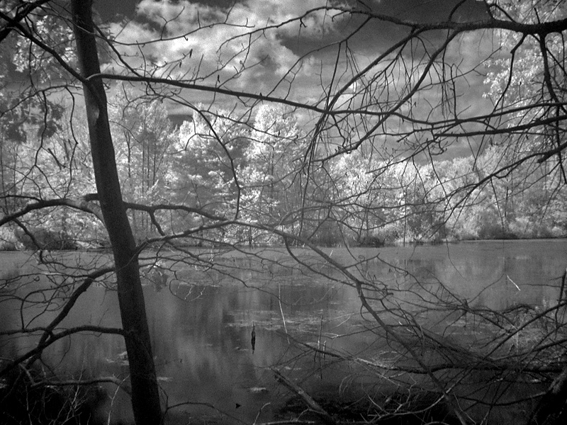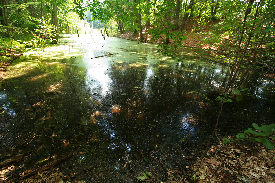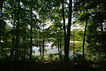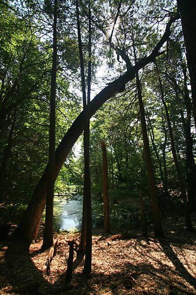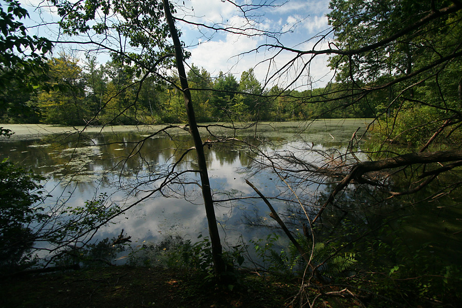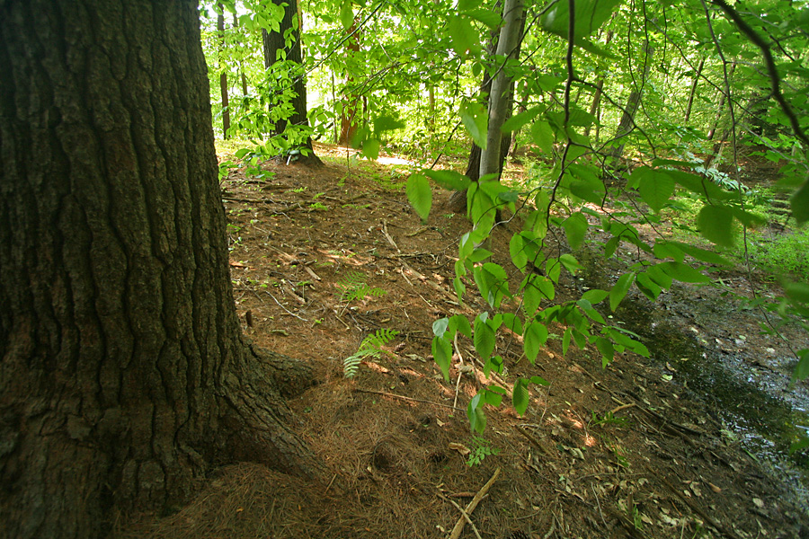 the printed trail map to pod meadow shows a haphazardly meandering series of dotted lines, which i thought were mistakes. once i was there however, those lines turned out to be pretty accurate. down an embankment i came across several bodies of water. whether they by ponds or river estuaries or even vernal pools i couldn't exactly be sure, but it was the kind of habitat i liked, ones with a wide possibility of wildlife. one of the predominant feature is a hill that rises above the water; whether or not this is a esker i don't know either. the trees were a combination of white pines, birches, and beeches. i found several good sized beech trees that were amazingly free of carved graffiti. in autumn this must be a lovely place when the leaves become a canopy of fluttering yellow foliage.