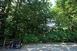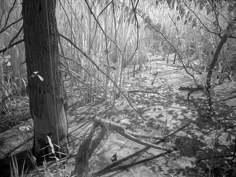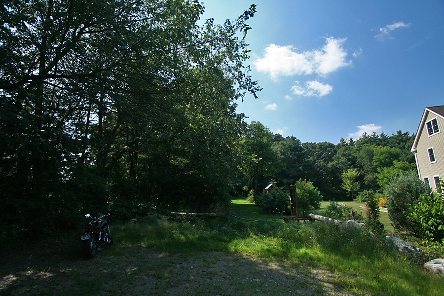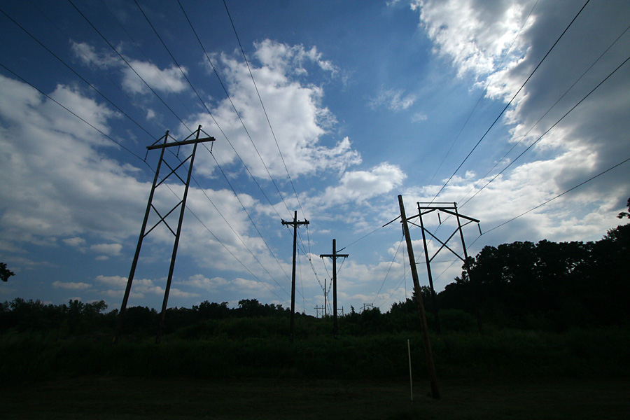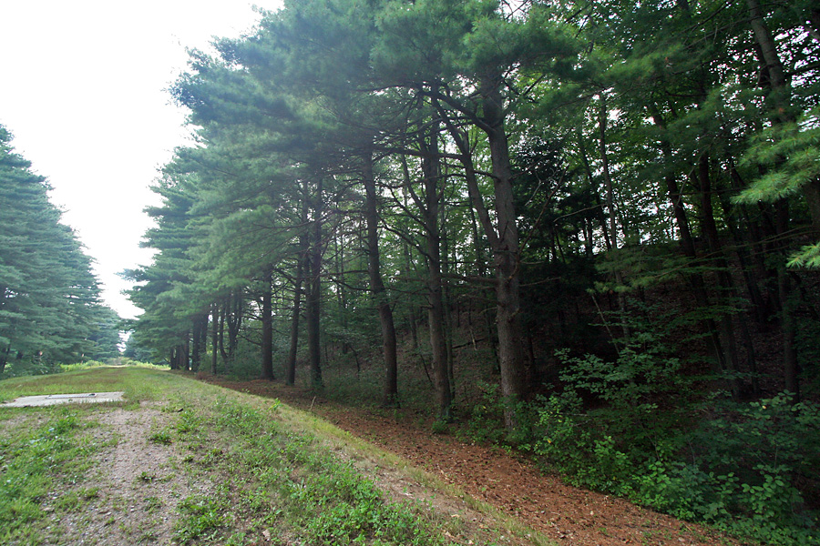 the trail eventually came out to a clearing marked as the hultman aqueduct on the map, essentially an access road running in a east-west direction. i decided to head west as far as i could to see where it'd take me. that's when i came across the only other person, a man walking his dog about a thousand yards away (not sure about the distance, close enough to make it was a person and a dog, but still far enough that they were just dots on the horizon). i kept on walking and eventually they disappeared. at some point i crossed the wayland-framingham border, and passed some perpendicular power lines. eventually the path ends and exits out to an unknown street. that was my cue to turn back. the sky by that point had gone grey and it looked like rain was imminent. i didn't want to ride back home in a thunderstorm, not with so much unprotected camera equipment.