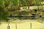 there were birds but still too early for migrants. there were a lot of old-of-season wood ducks, some black ducks, and a few swans.