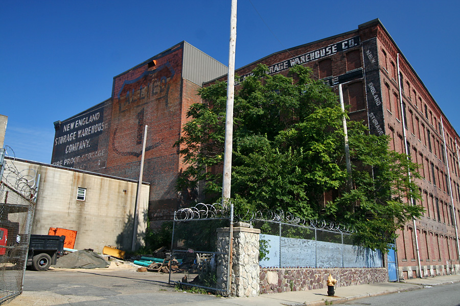 i circled the block and ended up on nearby george street to get to shirley street, where the shirley-eustis house is located. there were some interesting large brick warehouses at the start of the street.