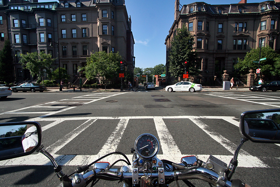 and if i could recognize some landmarks, i'd know where i was going. harrison ran across mass ave at the boston medical center. i didn't want to retake mass ave but it was the only way i knew how to get home, so i headed northwest back towards cambridge. stuck in traffic at the intersection of tremont, i took a right turn out of impatience, figuring i might get to copley square and get home that way. tremont cut through the south end and i began to get a better sense of where i was going. once i arrived at berkeley street, i made a straight-shot northwest until i hit storrow drive.