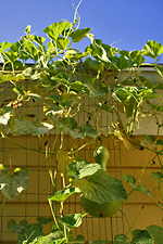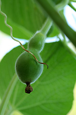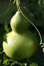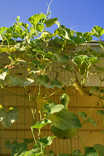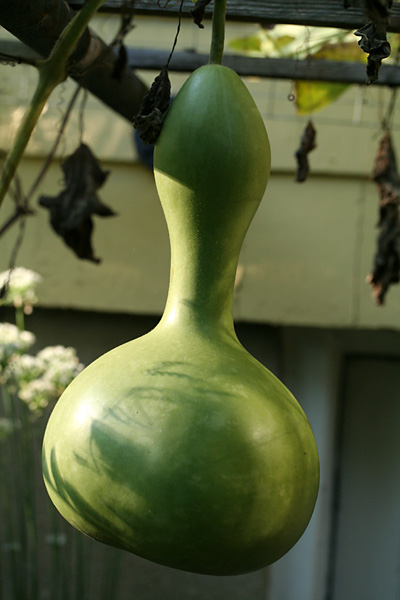 with the season winding down, the bottle gourds are making a stand. there looks to be 6 good bottle gourds and 2 good calabash gourds. by calabash i'm referring to the bottle gourd with the long neck. there were a