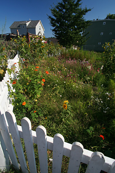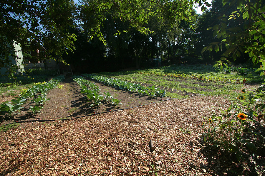 one of them had GIUGLIANO CORP written in big letters on the side, an everett-based construction company. at the intersection of george and langdon street was a large food project garden, with organized rows of vegetables grown by local kids. it almost didn't seem real, this plot of rural development in an otherwise urban residential area.