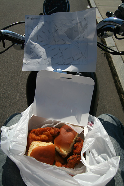 eventually pulling into harvard street. i found a quiet place on top of a hill overlooking some housing development and parked by the side of the road to eat. the area was called harvard commons and dotted with large brand-new single family houses. not sure if they were all the same cases, but the one i was looking at was a furnished model. my focus back on my lunch, new york fried chicken was surprisingly good, much better than KFC. the biscuits were on the sweet side,