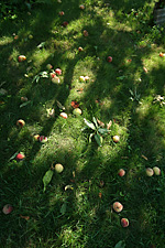 just like the good project garden, it was jarring finding the shirley-eustis house smacked in the middle of roxbury. the mansion itself is surrounded by a large manicured lawn with a perennial garden and an orchard. a sign on the front door had instructions to knock on the back entrance for a paid tour, although i didn't think there was anybody inside the house. i basically walked around the property, taking photos. next to the house down a slope was a carriage house. there were overripe peaches and apples on the ground and i was tempted to try one but thought better of it since it seemed none of the neighbors had taken any.