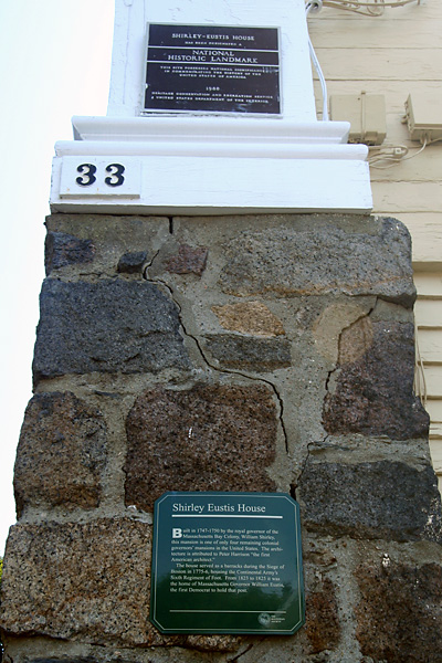it's called the shirley-eustis house because it was originally the home of william shirley (1747), royal governor of the massachusetts bay colony. during the american revolution the house was seized by the new rebel government as loyalist property and then later changed hands through several owners until it was purchased by william eustis. the house originally occupied 33 acres but after the civil war the then-owner subdivided the property into smaller lots for sale.