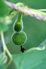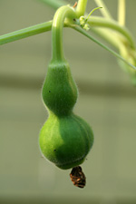 few immature bottle gourds that looked promising last week but those have shriveled up. which is for the best, because the vines probably can't sustain anymore gourds. so it looks like on the average each single gourd plant can produce 3 mature gourds. i found some caterpillar droppings and discovered a caterpillar hiding in a gourd flower. i don't know what it could've been eating because i haven't noticed any damaged leaves. i exiled the caterpillar to a distant part of the backyard.