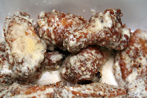 i had a craving for chicken wings and picked some up from wing works for dinner. despite the fact that i only got 9 pieces when it should've been 10, by the time i finished i felt like puking. it'll be a long time before i eat wings again.