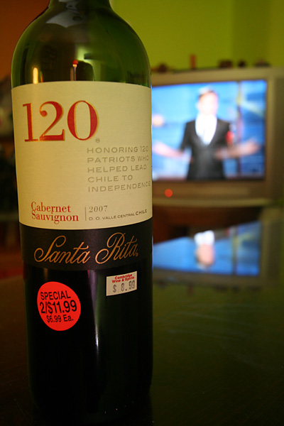 it's my roommate's last week here in boston so he's been working hard trying to finish his project. besides the abbreviated week due to the long labor day weekend, he's also taking friday off with his advisor to go up to arcadia national park (to see the autumn foliage which unfortunately haven't started yet). he'll be back sunday afternoon and then i'm driving him to the airport early monday (how early? i probably won't go to bed until i get back from logan). he wanted to share his final bottle of wine with me (he already doesn't have any room left in his luggage), some chilean cabernet sauvignon. i'm hoping we'll have some left over so i can use it for cooking!