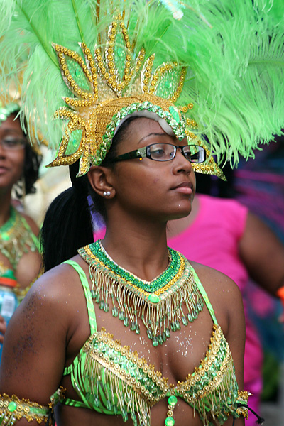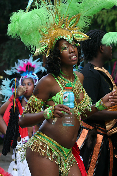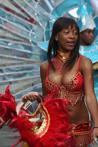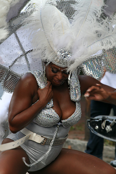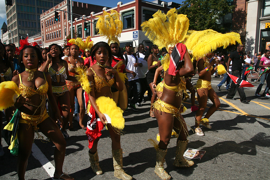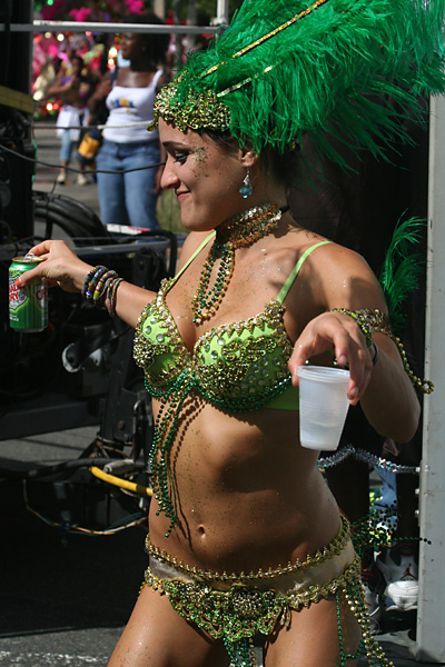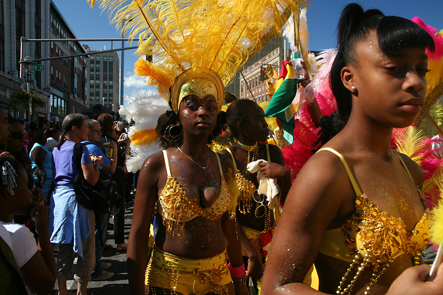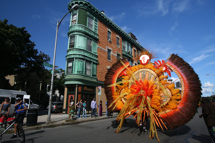 at least the weather was better (compared to the boston carnival), mostly sunny with occasional periods of grey. i even got a yellow bead necklace with a condom package medallion. i impatiently waited at the start of the parade at the intersection of blackstone and river street. once the parade started, i managed to see it 3 more times (two more places on river street then on mass ave) by walking to the front of the procession.