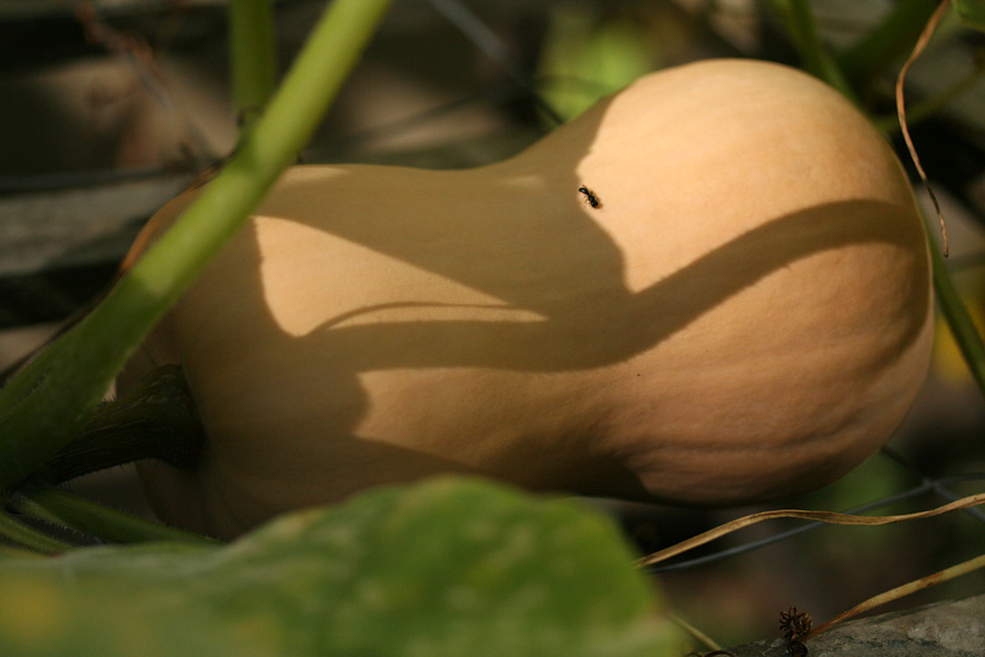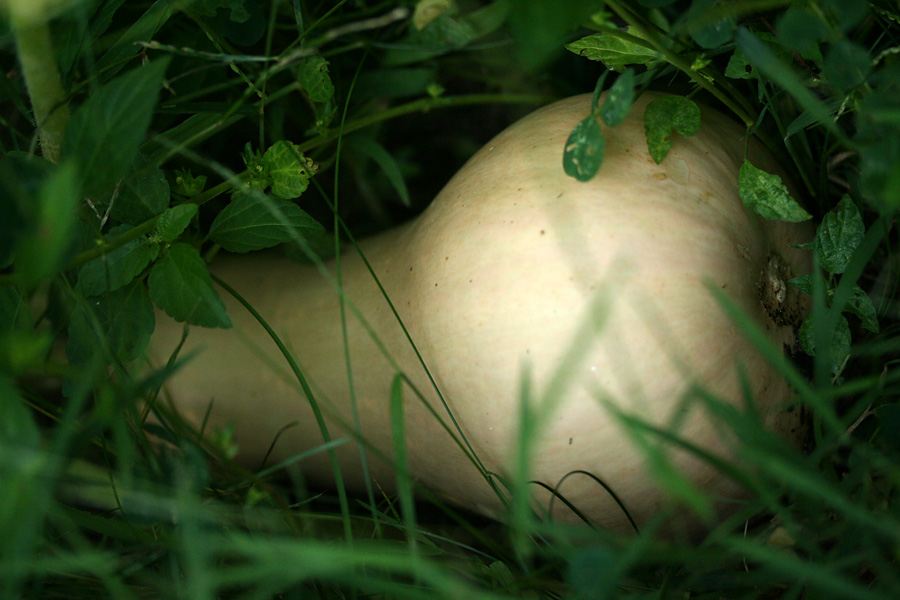 nobody was home when i showed up in belmont in the late afternoon for dinner. i toured the backyard, not much change since last week. almost all of the smaller immature bottle gourds have shriveled up, leaving just the 6. also in the grass i discovered a hitherto unknown butternut squash. it must've been there for a while but seems a bit pale.