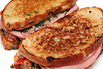with my fridge stocked with groceries (actually just a few items), i went ahead and made some caprese paninis for dinner. i grounded by own pesto with my small food processor; it's not very good because