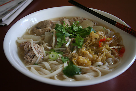 "i was just about to call you to come over for some beef noodle soup," my mother told me when i dropped by the cafe in the early afternoon after getting another sample can of cabot stain (slate grey, i'm feeling you). the chinese construction guys working on the nearby restaurant showed up as well for lunch, each one taking turns using the bathroom before finding a seat and waiting to be served. i never liked any of them and they definitely didn't win over my affection today. i can't wait until the restaurant renovations are done and i never have to see them again. not even sure if they paid for their food, but my mother made them all noodles. there was some special sauerkraut she added for extra flavor, but all of them scooped it out of their bowl, like they didn't even pretend to eat it. once they finished, they left without cleaning up.