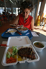 for some reason i thought super 88 was closed; i was partially right, it did go out of business, but a new hong kong supermarket is taking its place. we did some shopping first before getting a late lunch at the food court. the thai place i always go to was no longer there, replaced by a taiwanese store serving items that didn't seem particularly taiwanese. i ended up getting a korean lunch special, barbecued unagi eel on rice with a salad and kimchi and a bowl of miso soup. julie had some vietnamese noodles.
