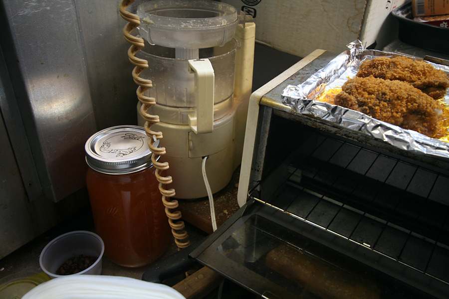 (i'd done a bunch of research a few weeks ago so i knew all the steps). he used too much and water and didn't put in enough sugar, so the product was runny and sour. i printed out some new directions for him, hopefully the second batch will be better.