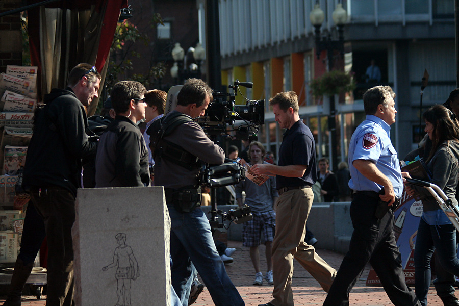 no jon hamm, no blake lively, and no ben affleck) as the handlers were busy corralling pedestrians out of the shot. there were those who weren't ushered away, and they turned out to be extras, even down to the two boys performing skateboard tricks. the scene i saw was a security guard pushing a cart full of money into a bank. they shot it twice, i left soon afterwards when i realized there'd be no celebrity sightings today. coming back across the harvard campus i walked through the farmers' market.
