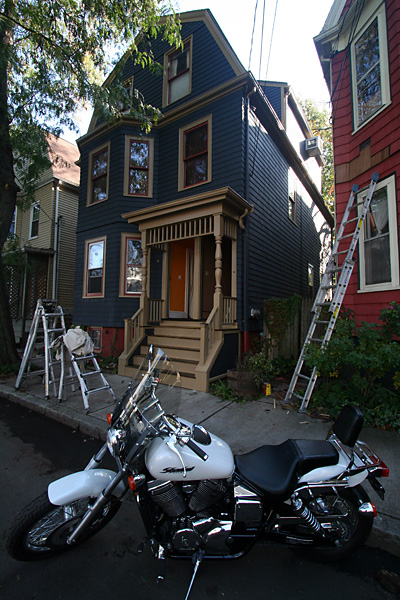 he did a little side project for my neighbor renee, pull out some rotten shingles, putting in new ones, and then paint it. when steve came back home, cleber wanted us to do a walkthrough to see if there was anything else he forgot to paint. both steve and i were happy with the work and in a private moment steve thanked me personally for managing this whole project. we paid cleber an additional $100 for the gutter downspouts he bought and painted for us. when he showed us the receipt as proof, we noticed it was actually $107, and both steve and i each pitched in an extra $5 in cash. cleber said he was coming back tomorrow to put in my lights and to paint a small area on the foundation. with the house all fixed and painted, steve asked the question, "now what?" i guess our next project will be to landscape the backyard, but i'm in no hurry.