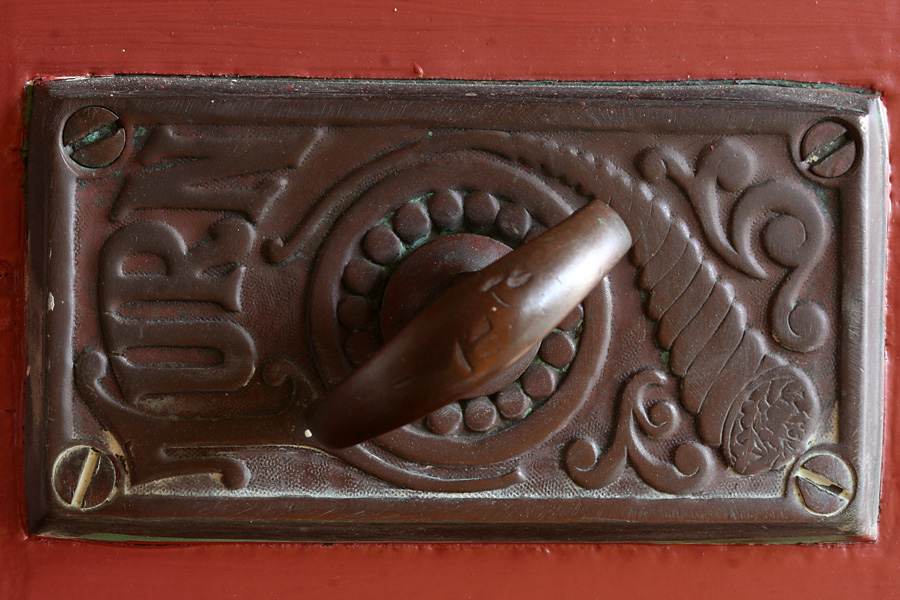 if i really wanted to do a thorough job, i should take the whole thing off the door and give it a better cleaning. one of the unique things about my house is i have an old-fashion hand-cranked twist doorbell on the door. when you turn it,