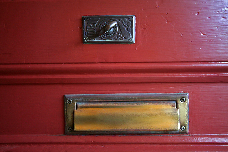 yesterday i cleaned the brass (?) mail slot on my front door. it'd been weathered over the years, and i worked on it with a steel brush and some bicycle lubricant. i managed to get it pretty shiny.