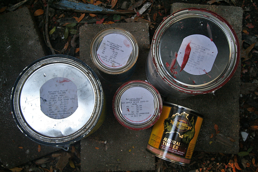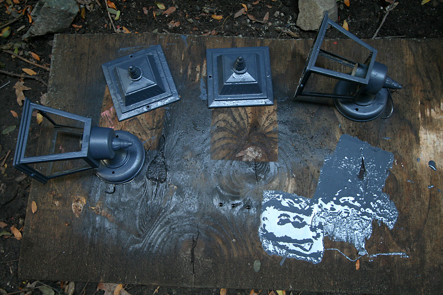 in the late afternoon i was out in the backyard again, this time re-assembling the dried light fixtures - screwing in the panes of glass and adding a CFL light bulb to each fixture. this way when cleber returns tomorrow, he can put them back on the house right away.