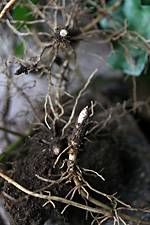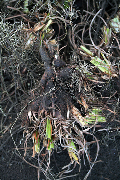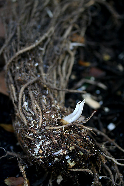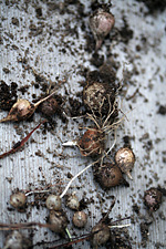 some perennials needed to planted in belmont as well. i dug out the clump of irises and tried to unsuccessfully divide them. my father planted them when they were simple rhizomes many years ago, but now they were a tangled mess of roots, impossible to separate without cutting. i uncovered a few beetle grubs; i'm usually very kind to insects, but when it comes to grubs, i'm pretty remorseless. they feed on the roots, and anytime i come across one, i kill it right away. i also unearthed a bunch of small bulbs which i think are crocuses. i'll replant them and hope i get some flowers in the spring. elsewhere, on the other side of the garden where i want to start a shade garden, i dug out my original hostas. not sure what variety (blue?),