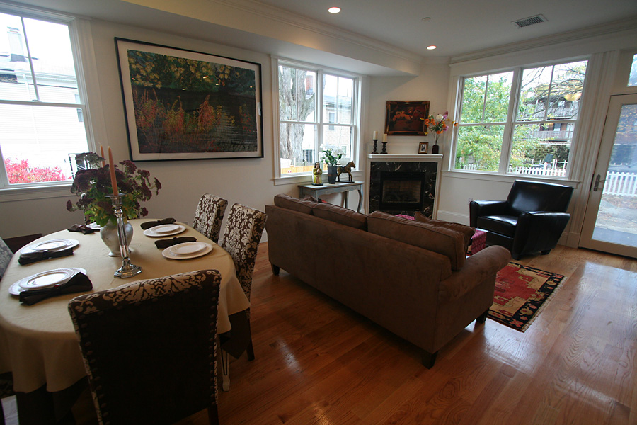 while i was there i met mike, who was moving to boston from philly with his girlfriend. she was coming up next week to take a look at the place. he was taking photos with his iphone and mailing them to her. since i live nearby, i had some insight on the neighborhood which i was happy to share with him. he was thinking about marriage and possibly kids ("in 10 years time," he said), and i told him he was better off living in the suburbs (like belmont) for the finer schools and more family-friendly environment (he said he wasn't ready to give up the city life just yet). in talking with him i quickly got the sense that he was in an entirely different income bracket, since he and his girlfriend also own 2 more homes in philadelphia. the units are definitely priced to move, since a 1600 square feet 2 story condo 2 houses from me was selling for $600k (as far as i know, it's still unsold, and now the owners have become reluctant renters). i said good bye to mark before i left, who added, "tell all your rich friends about this place!"