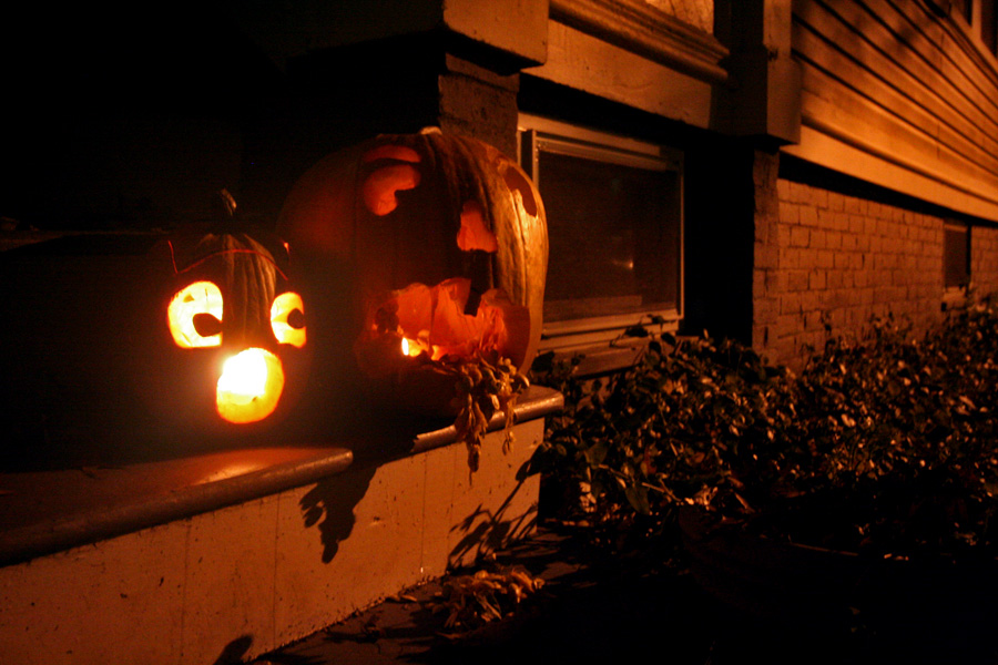 in the evening i went out to check out some the neighborhood halloween displays on traymore and crescent street. up and down my street, children in costumes were walking around in the dark along with their adult chaperones (who were also often times in costumes as well).