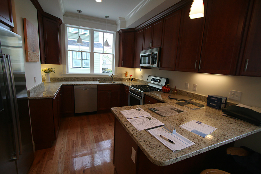 coming back, i passed by the new luxury condo on 221 beacon street. there was an open house sign which piqued my interest. i remember when that place used to be a gulf gas station. i'd been watching the construction slowly taking place, and was curious to see what the finish product looked like. i met mark, the real estate agent, who was also 1/3 stalk holder of the development property. he had an accent, either mediterranean or middle eastern. since there wasn't anybody else looking at the time, he took me on a guided tour. there was a total of 8 units selling for $665k a pop. 1729 square feet, 2 garage space (underground), 3 bedrooms, 2.5 baths, central air, 3 floors, hardwood floors, gas fireplace, skylight, granite counters, steel appliances, in-unit washer/dryer, $180 condo fee - in essence, the works. however, 3 of the 4 corner units were already taken, and i took a peek at one of the middle units and it's a bit dark. also, amongst all the luxuries, i was surprised to see there was no hood above the range (which is a essentially a deal breaker for anyone who does a lot of cooking).