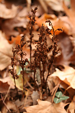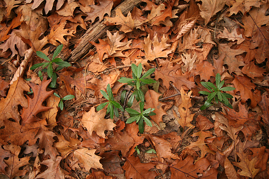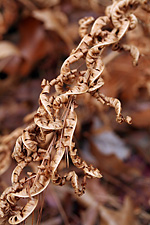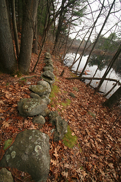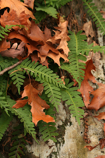 for the most part everything was dead. on the western side of the pond along some rocky cliffs some ferns had managed to survive the cold temperature. i'm still not very good with my fern identification: the only one i knew for certain were the polypody (i think they may be evergreens). coming to wayland, i saw a red-tailed hawk swooping down the road. in the pond were the usual mallards and canada geese. also in the pond were a pair of mating meadowhawk dragonflies (maybe they're newly hatched; not sure how they could've survived the cold stretches a few weeks ago). off in the distance crows were noisily mobbing an unseen predator. further up i saw something grey and furry streaking through the dead oak leaves. it was the size of a chipmunk, but i didn't get a good look (southern flying squirrel? but on the ground? during the daylight?). i tried rustling it out of hiding with a broken branch but it was already long gone.