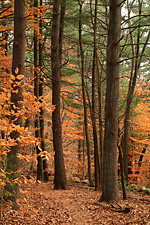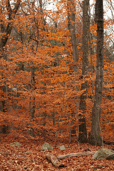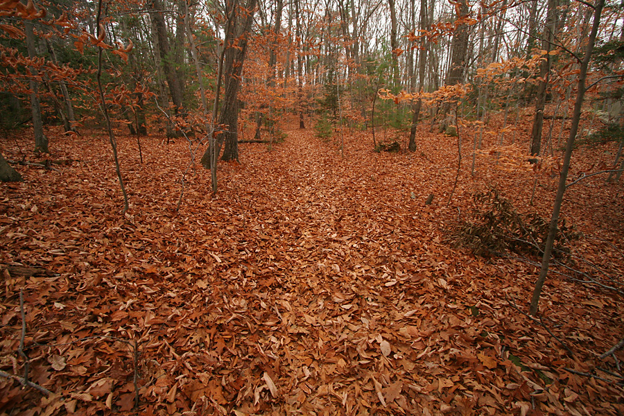 i was hoping to see some color foliage but i got there too late. besides, it was mostly an oak and pine forest with a scattering of beech, so the predominant color was brown. there was a horrible smell as i approached hamlen woods. swamps naturally smell kind of funky, but this was different, actually made me scared because i didn't want to find the source of that foul odor. a dead deer? runoffs from a nearby farm? once i got upwind of the smell it was okay.