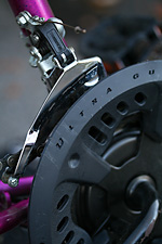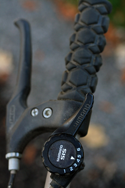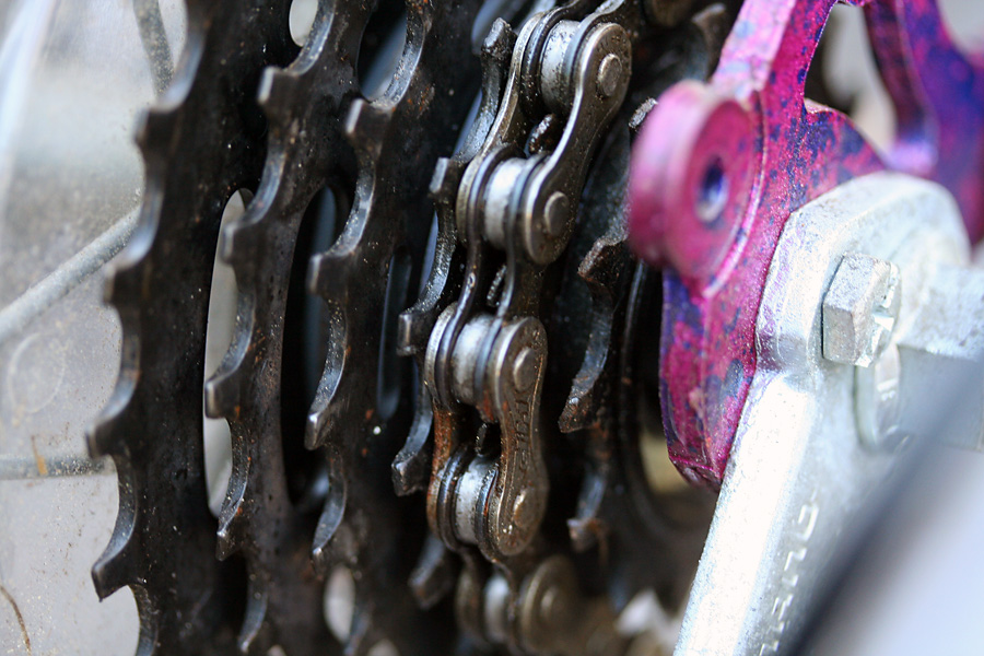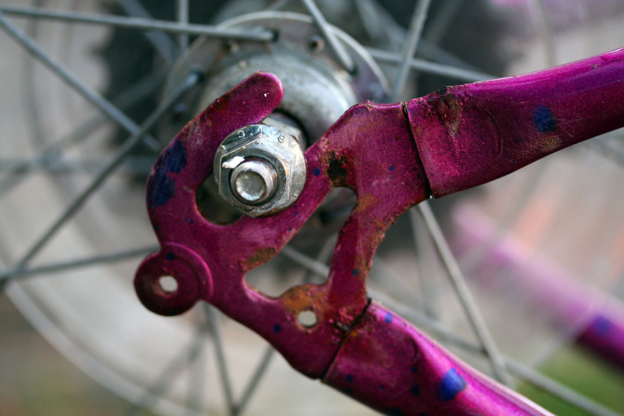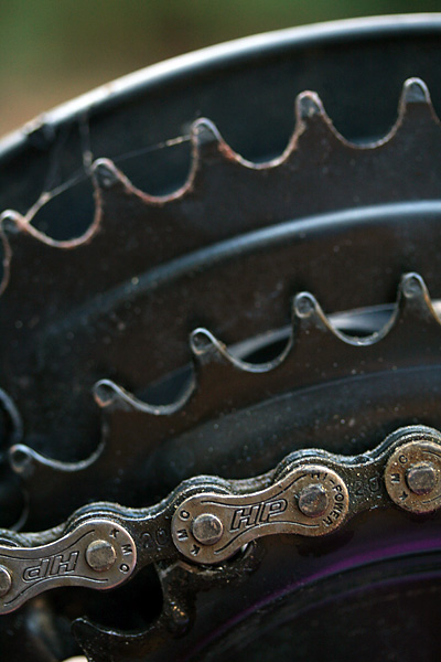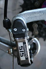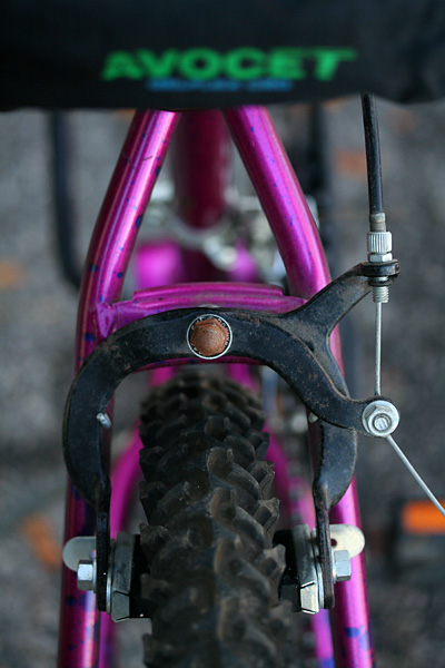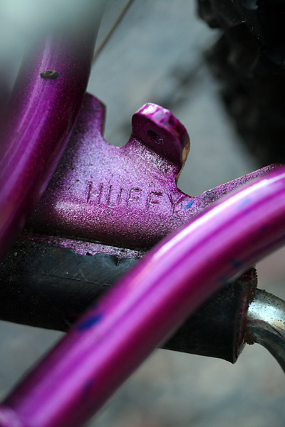 the second project was to clean up the spare bicycle. it's a woman's metallic purple huffy bicycle, but there's no logo other than a small "huffy" on the frame near the kickstand mount. it has a mountain bike style, with fat wheels and MTB grips. it has 18 speed composed of 3 chainrings and 6 cassette cogs (3x6=18). the bike has shimano's indexed shifting (SIS) which i like better than the vague numberless shifting on my regular bike. the bike seat is an avocet saddle, which i always thought was a promotional freebie from some drug company. turns out avocet is actually a legitimate bicycle equipment manufacturer. the seat is great, made from some elastomeric gel material. the only bad thing is the covering isn't waterproof.