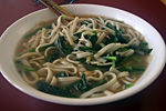 my father was eager to attach the panniers to my bike, but i'm happy with my oversized milk crate. the bags are great but unfortunately they're designed for 26" wheels, which means they drape a little bit too much on my 24" wheels (not so bad on the left side, but it definitely sits on the cassette on the right). my godmother was also at the cafe when i got there. i had some turkey noodle soup for lunch before i returned home. i also brought back some chinese oil rice for dinner.