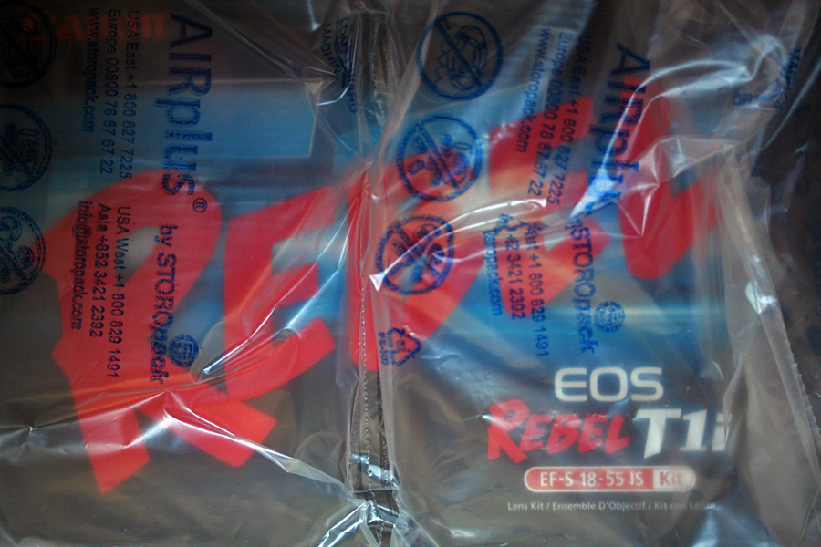my roommate's canon t1i finally arrived today, along with an 8gb SD memory card. i accidently opened the package thinking it was one of my orders until i saw what was inside.
