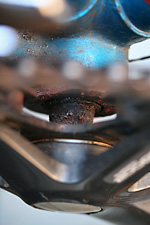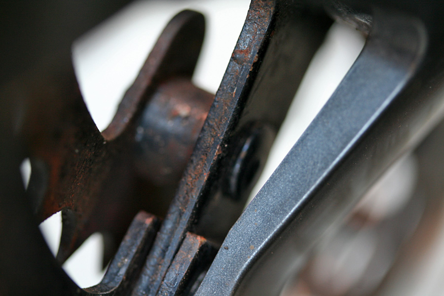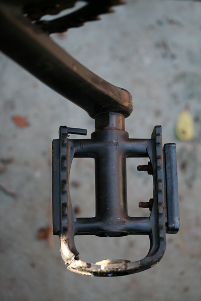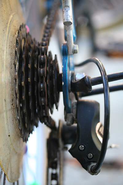 i took a bunch more photos of the bicycle today, for personal reference. i've been reading up a lot on bike repairs, but the problem is i never have the bike in front of me for identification purposes. hopefully with these new photos i'll have a better sense of what needs to be fixed. at the very least i feel like stripping down the bike so i can give it a thorough cleaning. there's still an awful lot of rust in the crevasses where i can't easily get my hands into to clean. i still want to replace the chain and the rusty broken chainrings; learn how to replace the gear and brake cables; remove the derailleurs to clean and then readjust them; and to paint my bike frame.