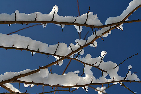 last night's snowfall did not all melt away like i originally thought. the temperature this morning was still around freezing point, so everything stayed just the way it was. the roads were clear for the most part, courtesy of snowplows and salt trucks late last night. the sidewalks were a mess of frozen slush though.