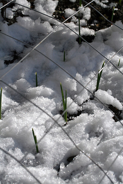 when i finally got back to belmont, i found my mother cleaning the house on her only day off. hailey was outside in the backyard chasing after falling snow clumps from tree branches. i took a survey of the garden and was shocked to see that the crocuses have already sprouted.