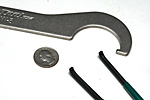 the other box was a few bicycle tools, a bottom bracket c-wrench (park tool HCW-5 $9.73) and a pin spanner (park tool SPA-1 $5.48). the pin spanner smelled strongly of the green plastic coating the handle; the tool itself resembled either an enormous pair of tweezers or chopsticks. i was surprised by how large the c-wrench was, big enough to brain someone (that's how i categorize tools). i'm still waiting for my bigger shipment of bicycle tools, including a replacement crankset.