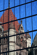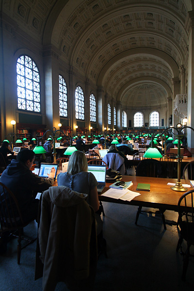 my roommate deduced that those were probably the people doing the santa speedo run later (this is why he's an astrophysicist and i'm not). after browsing 3 floors of the apple store (my first time!) we went into the prudential center shopping plaza to look around a bit. we continued down boylston until we arrived at copley square. with about 40 more minutes before the speedo santa run started (at 1:00), i took my roommate on an extended tour of the boston public library.