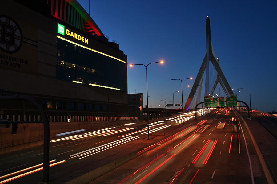 the view of interstate 93 below causeway street gave us a great opportunity to try some time lapse photography. the view of the city from north station and the boston garden wasn't too shabby either.