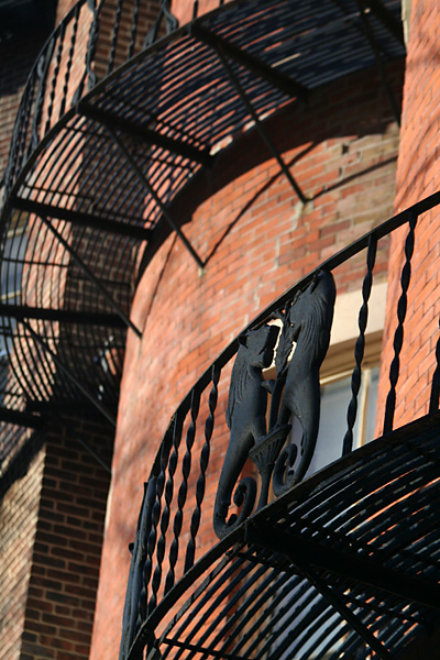 to feed them with leaves (i was afraid one might bite me out of retribution). we saw a few common new england birds but uncommon in china, including canada geese, starlings, robins, and mourning doves. from there we cut across the boston common to frog pond (where a long line of people were awaiting their turn to stake), then up to beacon hill to see examples of bootscrapers.