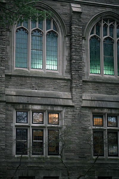 despite still suffering from my foot pain (right foot, i think i might've strained a tendon), i walked down the 15 minutes it takes me to get to harvard square to see if my sister's friend michael was working at the eyeglass store today. once again, no such luck. i then hobbled back home, cutting across the divinity school instead of my usual way up oxford street.