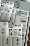 i also had some time to replace my sister's broken ibook keyboard. of the 2 that arrived yesterday, only one of them was an exact match to the old keyboard. however, that's the one that's slightly bent and with a crooked keyboard fastener.