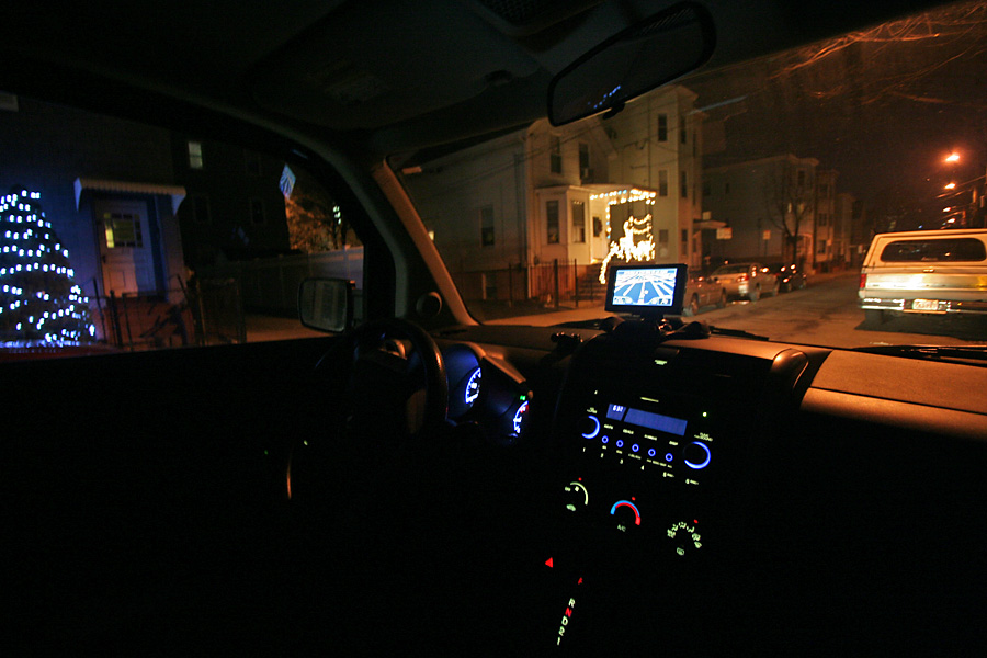 in the car for those occasions where he had to park illegally, and input the next address into the GPS. he was using the garmin portable friction mount i got him a while back. for something that looks like a glorified bean bag with a mounting hook, it holds surprisingly well and much better than using the suction cup mount, which periodically falls off. in the few hours that i tagged along, we must've made a dozen deliveries. i was hoping to see some serious snow action but the sky was eerily quiet. by 9:00 with business tapering down, my father dropped me off back at my place.