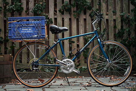 today i took out my rebuilt bicycle on a test ride (here's the same bike back in november). i didn't really notice that much of a difference, maybe a smoother ride, but that could just be a placebo effect. the pedals were a little bit further apart, but once i was riding i couldn't distinguish the difference. i adjusted the cantilever brakes earlier,